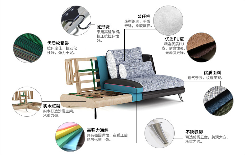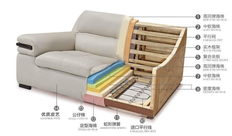 沙發(fā)的坐墊有兩種類型,一種是彈簧包,一種是全海綿。低端沙發(fā)還有用蛇形豎彈簧和發(fā)泡橡膠、公仔海綿的,這種變形不耐久、橡膠硬化不舒服,基本只有3~5年壽命。中高端產(chǎn)品用更牢固的高彈性繃帶和不易變形的S形橫向彈簧,填充物主要有高回彈記憶海綿坐墊應(yīng)選擇36-50公斤/立方米以上的高彈泡沫海綿,背墊應(yīng)使用密度25-35公斤/立方米以上的高彈泡沫海綿,不易變形。