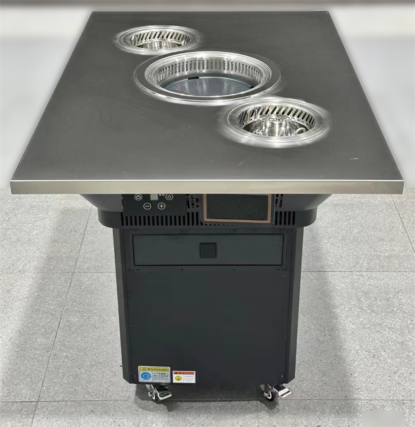 這款不銹鋼無煙自凈化烤涮一體桌是專為火鍋烤肉店設計的專業餐飲設備。它集烤、涮、烹飪于一體,采用先進的無煙凈化技術,有效減少油煙產生,為顧客提供健康舒適的用餐環境。產品通過CE和UL認證,確保其符合國際安全標準,為您的餐廳提供可靠保障。同時,不銹鋼材質堅固耐用,易于清潔,能夠提升餐廳檔次和運營效率。