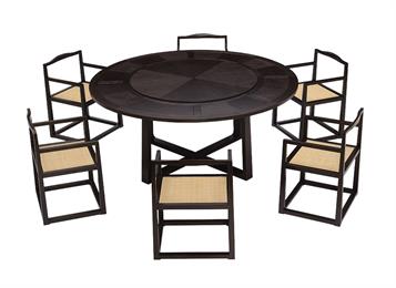 新中式實(shí)木水曲柳餐桌椅組合 主題餐廳圓桌