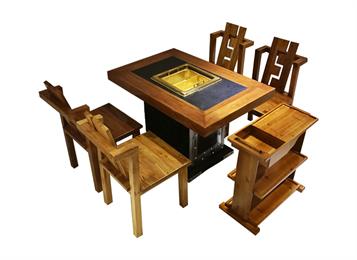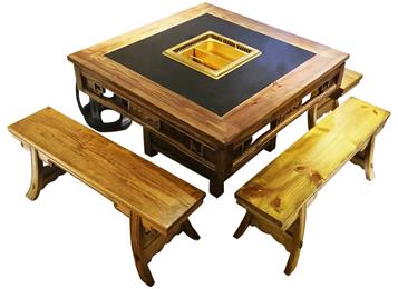 老榆木仿古實(shí)木新中式電磁爐下沉式煤氣無(wú)煙凈化火鍋?zhàn)酪?/a>